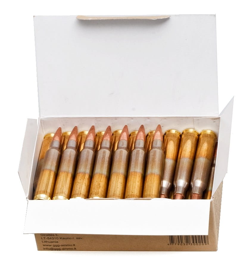 Amunicja kulowa do karabinków w kalibrze .223 Remington z pociskiem FMJ o wadze 62 gr (4,0 g) i w łusce mosiężnej produkcji GGG wyróżnia się wysoką prędkością wylotową (Vo: 950 m/s) co przekłada się na płaską trajektorię lotu oraz niepodatność na wiatr.