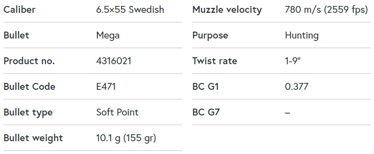 Amunicja kulowa Lapua kal. 6,5x55 SE Mega 155 grs