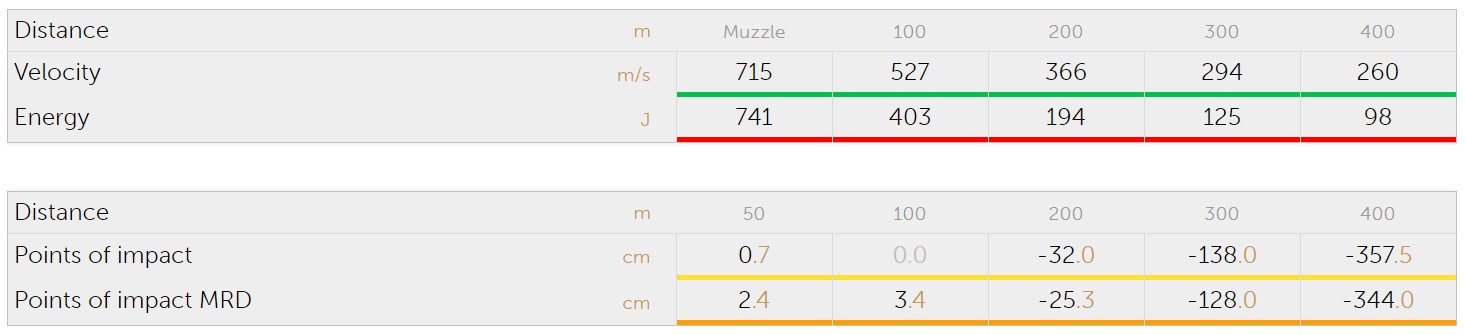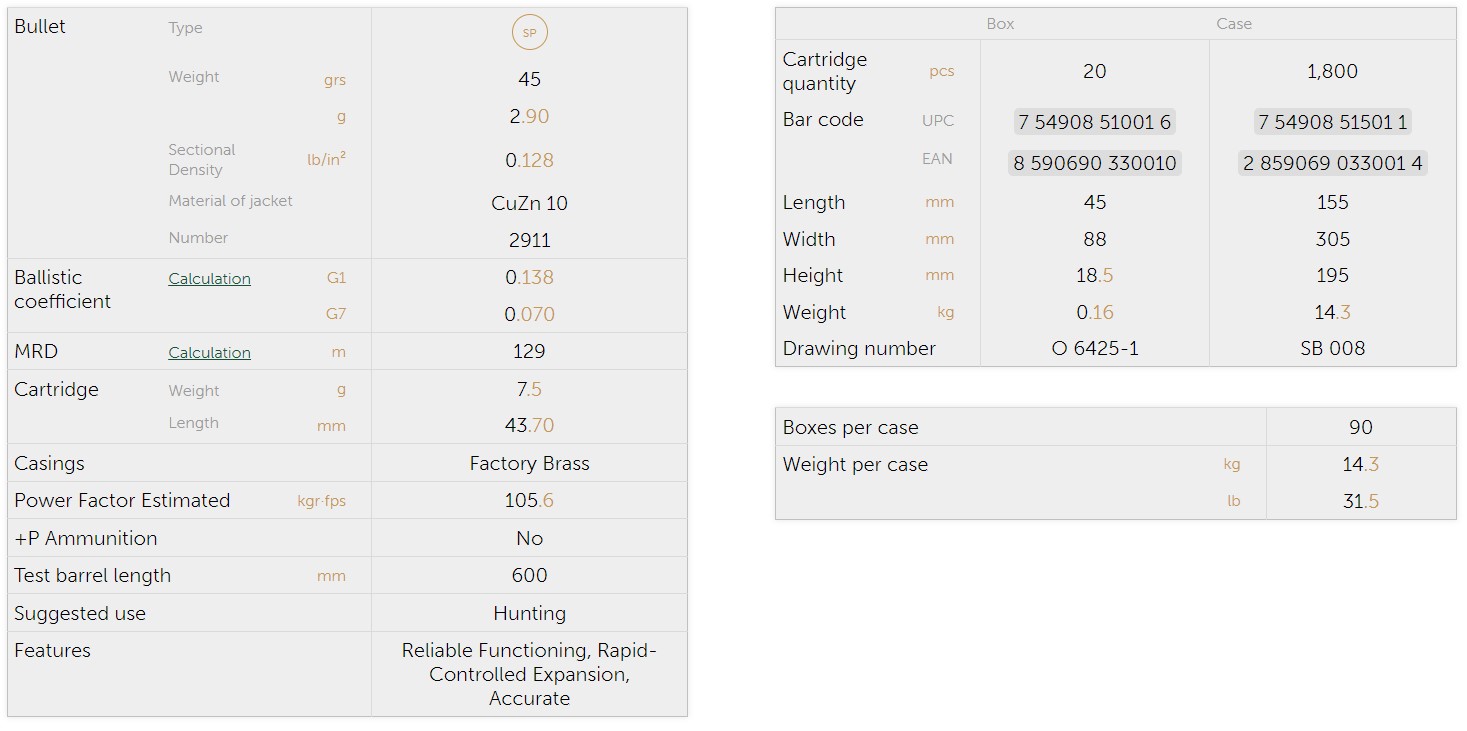 Amunicja półpłaszczowa o wadze 45 grs (2,9g).