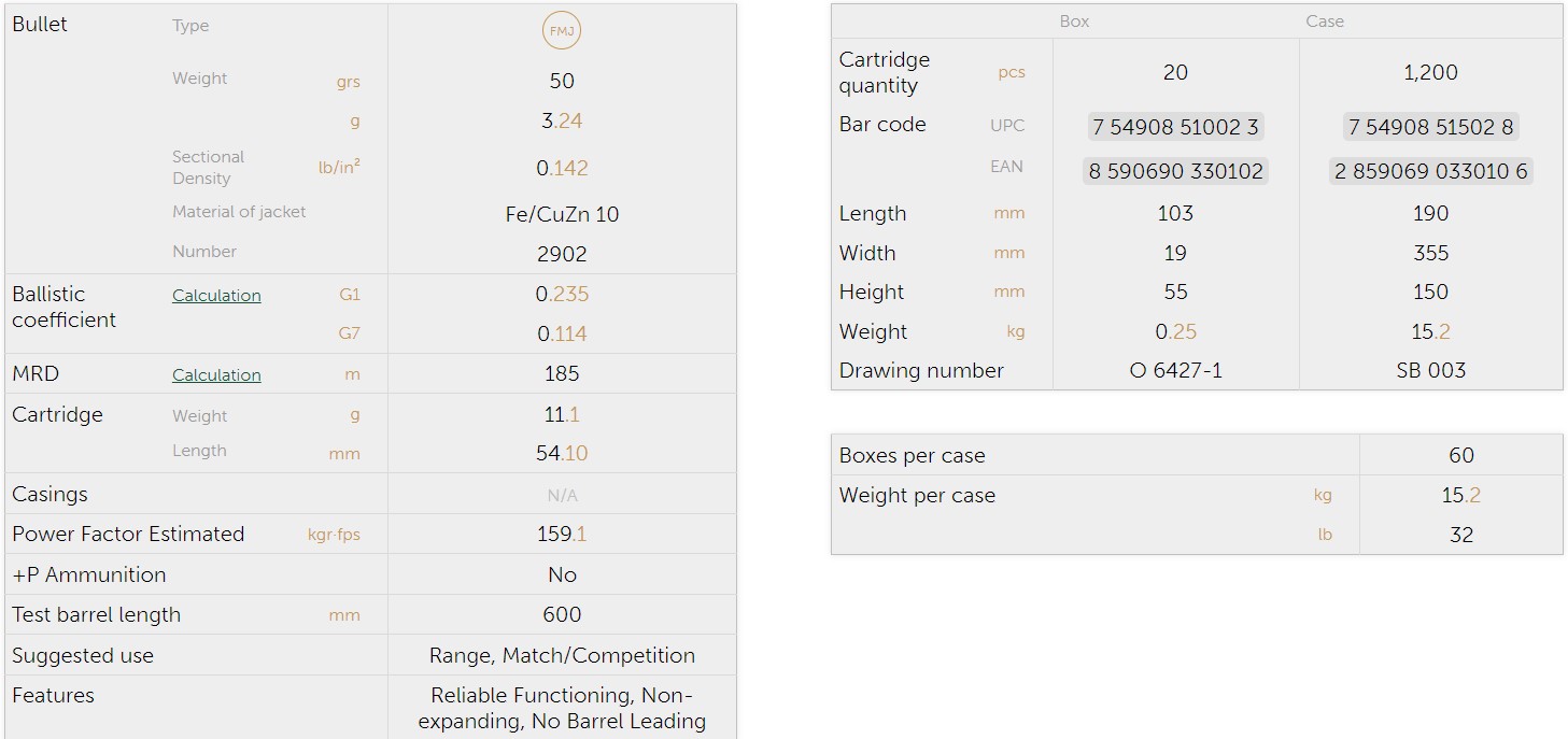 Amunicja karabinowa typu FMJ z peło-płaszczowym pociskiem. Standardowy rdzeń ołowiany z metaliczną osłoną. Najlepsze do zastosowań szkoleniowych i treningowych.