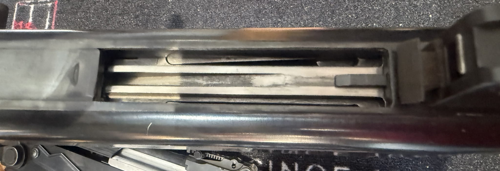 - Mechanizm: samopowtarzalny (semi-auto), gazowy z tłokiem
